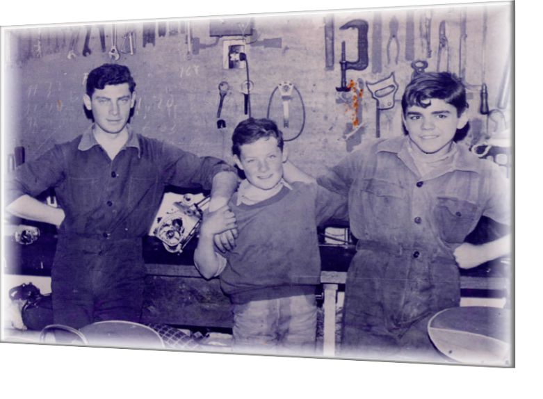 Podria decirse que nuestra historia comienza alla por el año 1962 cuando con solo 15 años, su fundador, René Holvoet bajo la supervisión de su padre, empieza junto a sus primos Javier y Pedro (foto) con un taller de motos en su casa de Villa Flandria.